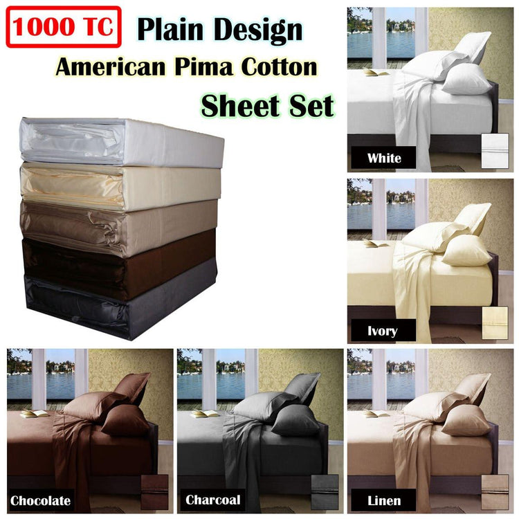 This super soft feel 1000TC American Pima Cotton Plain Design Sheet Set by Ramesses will add a touch of luxury to your bedroom. This American Pima Cotton Sheet Set is made from 100% Cotton in 1000 Thread Count that offers softness and durability in one. The plain design is coordinated with lovely colours of White, Ivory, Linen, Charcoal, and Chocolate. Includes Fitted Sheet with 40cm Wall, Flat Sheet and Pillow Cases.