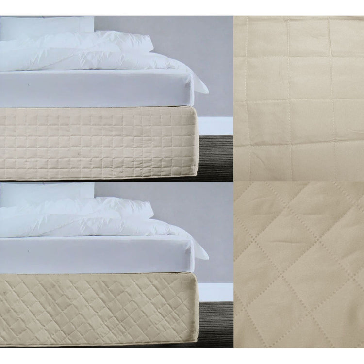 The super soft Microfiber Quilted Bedskirt/Valance 33cm Drop will bring you elegant tailored bed and beautifully smooth finish accent. It features a quilted box or diamond pattern design that is appealing to the senses. Available in neutral tone that will fit most existing bedroom decor. It is made from Polyester fabric.