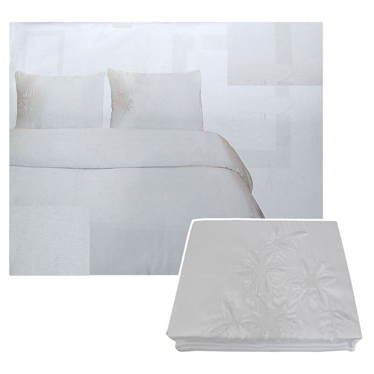 Tuberose Satin Embroidery Quilt Cover Set White Queen