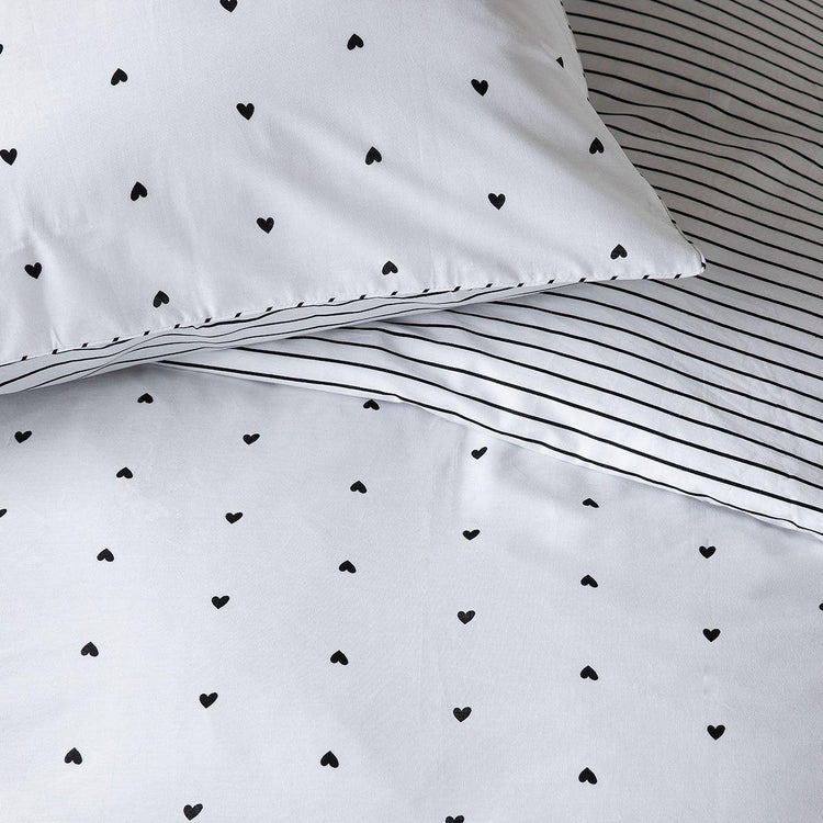 VTWonen Striped Hearts Black & White Cotton Quilt Cover Set Queen