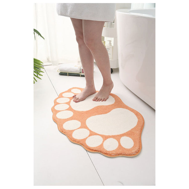 2 Pcs Orange And White Foot-Shaped Plush Bath Mat - Non-Slip Absorbent Bathroom Rug for Bedroom and Doorway (50x80cm)
