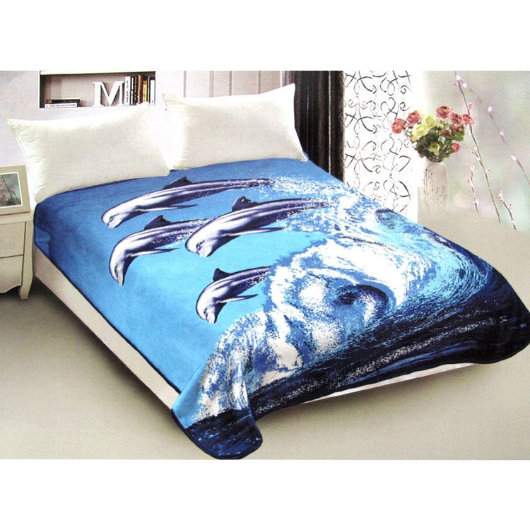 800GSM Luxury Reversible Animal Pattern Mink Blanket Queen 200 x 240 cm Jumping Dolphins