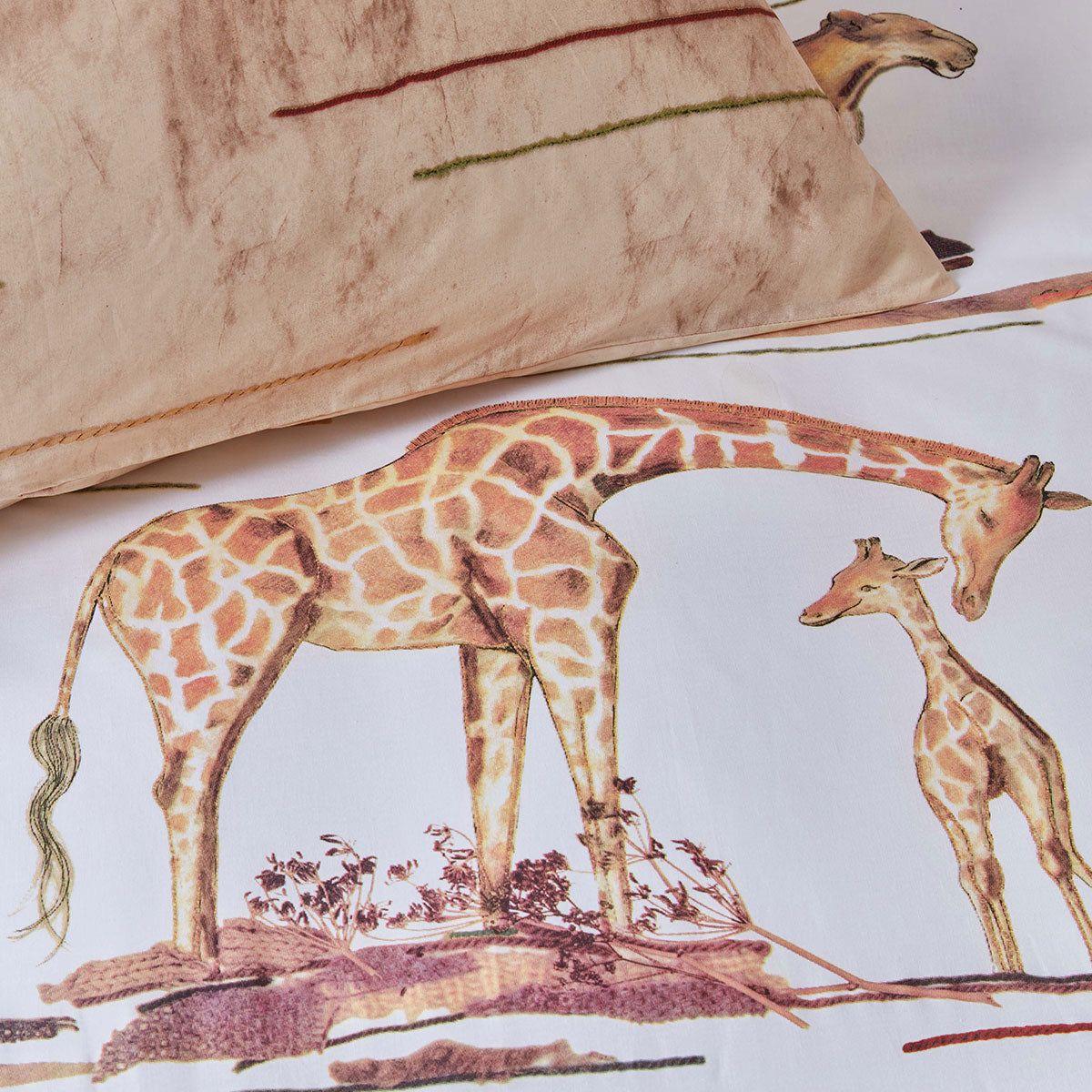 The Big Five Natural Cotton Quilt Cover Set Single by Bedding House features illustrations by Hanneke de Jager is perfect for animal-lovers. This cover is playfully decorated with elephants, lions, cubs, giraffes, and a rhinoceros printed in white, grey, burgundy, black, red, brown, and taupe colour tones. Turn your bedroom into your very own safari park!