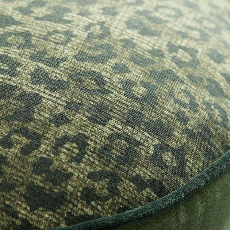With it's trendy round shape, panther print in shades of green and red velvet piping, decorative cushion Pardus Luxury Cotton Round Filled Cushion 40 cm Diameter by Bedding House is a must have for every living and/or bedroom. The back of the cushion is plain green. The decorative cushion Pardus is made from 100% cotton and with a diameter of 40 cm. The cushion comes with a resilient polyester inner cushion. The cushion cannot be washed in the washing machine and is not suitable for tumble drying.