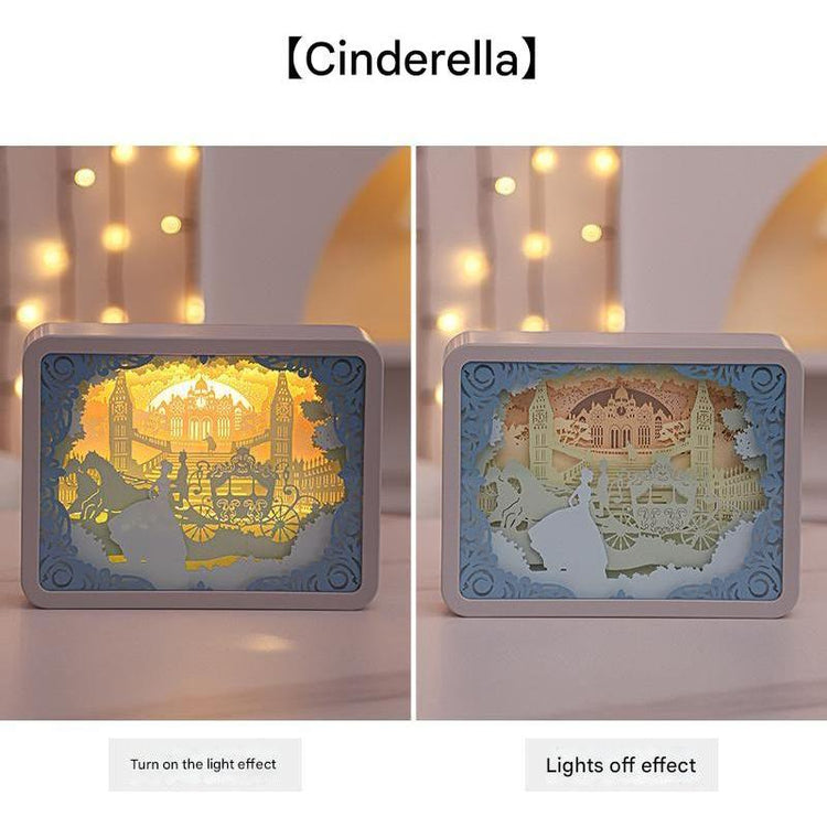 Cinderella 3D Paper Carving Night Light - USB Or Battery Powered Decorative Bedside Lamp | Atmosphere Lamp for Bedroom | Creative Starry Night and Little Prince Design Gift