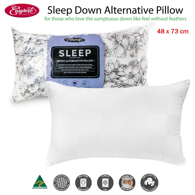 The Sleep Down Alternative Standard Pillow 48 x 73 cm by Easyrest has been designed for the discerning customer looking for that touch of luxury. Cotton sateen with a square check pattern and satin piping and the ultimate blends of fibre fill for those who love the sumptuous down like feel without feathers.