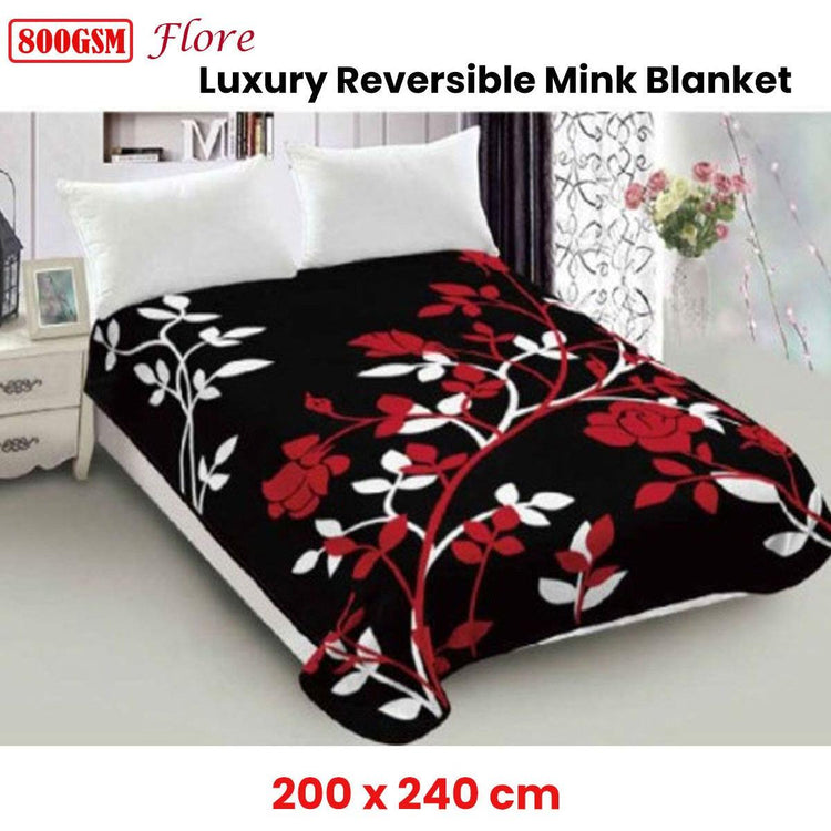Transform your bedroom into a luxurious haven with the 800GSM Luxury Reversible Mink Blanket Flore Queen 200 x 240 cm. This mink blanket features a soft texture and a 800GSM weight, perfect for year-round comfort and warmth. It showcases a stunning floral design in a vibrant color palette of red, white, and black, adding a touch of elegance and cheer to your decor. This versatile blanket is machine washable for easy care and is sure to become a favorite for movie marathons, cozy nights in, or simply adding a touch of floral flair to your bed.