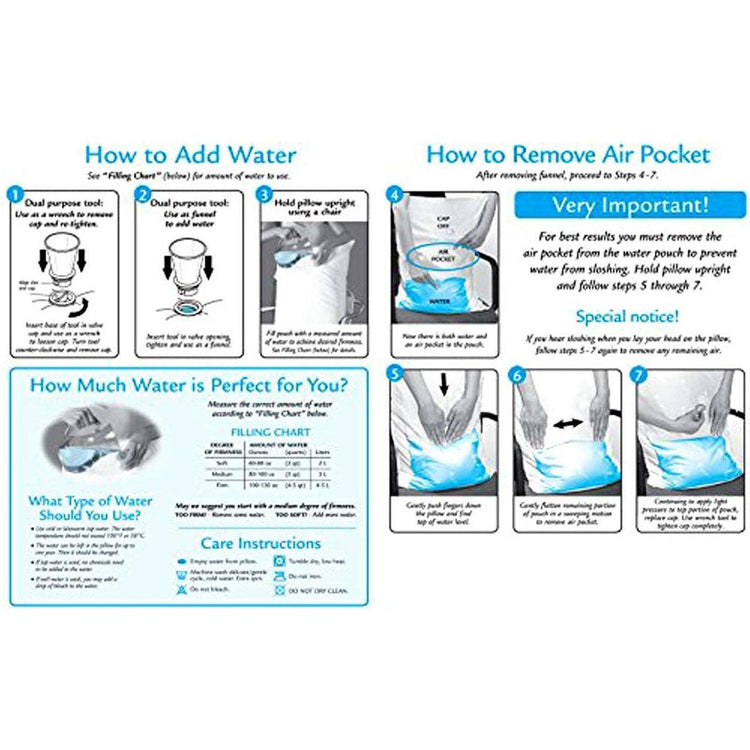 This is the pillow that proved it takes comfort plus support for the best night's sleep. That's why every Mediflow® pillow has 2 layers - on the bottom our proprietary adjustable waterbase that provides responsive support for the neck - on top a soft, plump layer of cloud-like Dacron® fiberfill polyester providing exceptional comfort for the head. Traditional single layer pillows can only provide comfort or support depending on the filling but never both. What's more, you can even customize the waterbase when you add water to achieve as much support as you desire!
