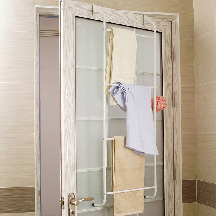 Over The Door Towel Rack Metal Behind Door Hanger for Bathroom Bedroom-White