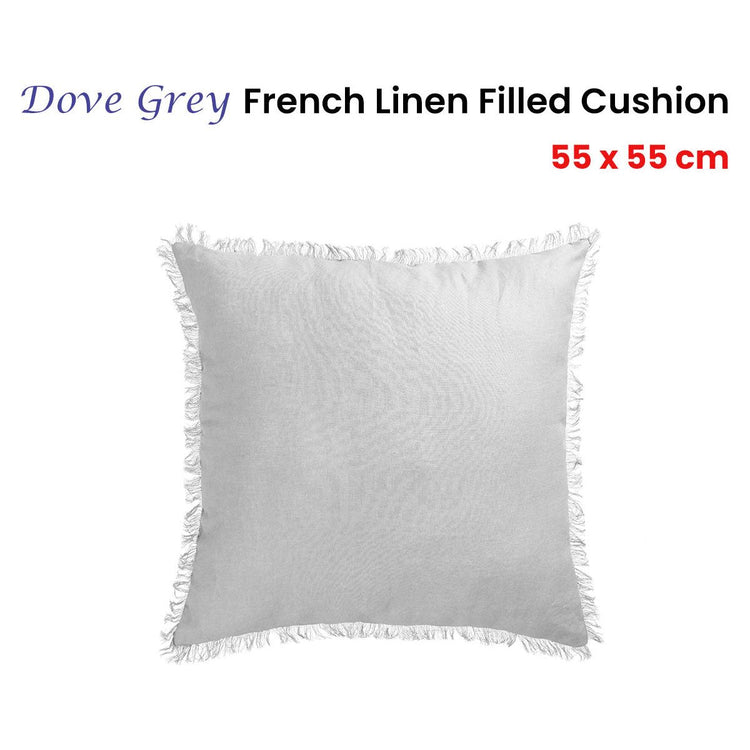Vintage Design Homewares Dove Grey French Linen Filled Cushion Square - 55cm x 55cm