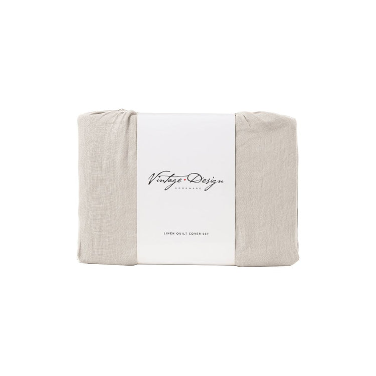 Vintage Design Homewares Natural French Linen Quilt Cover Set Queen