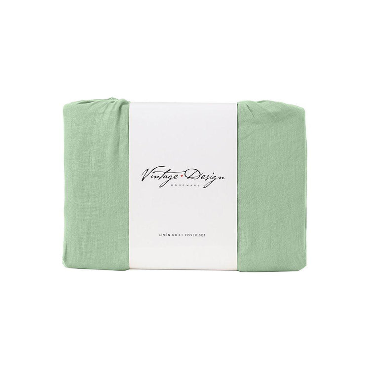 Layer your bed with our Pistachio French Linen Quilt Cover Set by Vintage Design Homewares. This quilt cover set is a dream to sleep in all year round, it's light and more breathable than cotton in summer, but also keeps you cosy and warm on winter nights. Our 100% Linen Quilt Cover Set comes packaged in a Linen Bag.