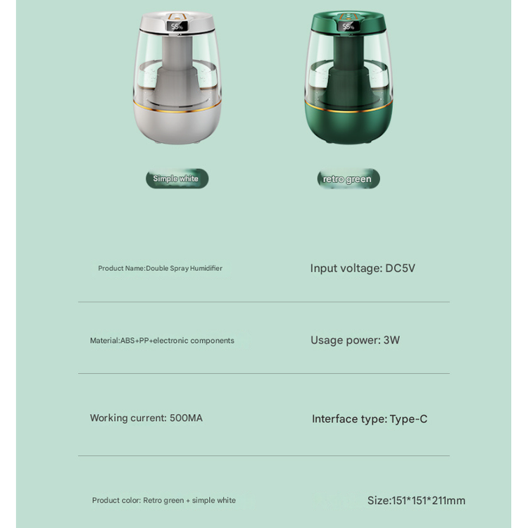 • Features: Dual Nozzle, Digital Humidity Display, Night Light, Water Filter
