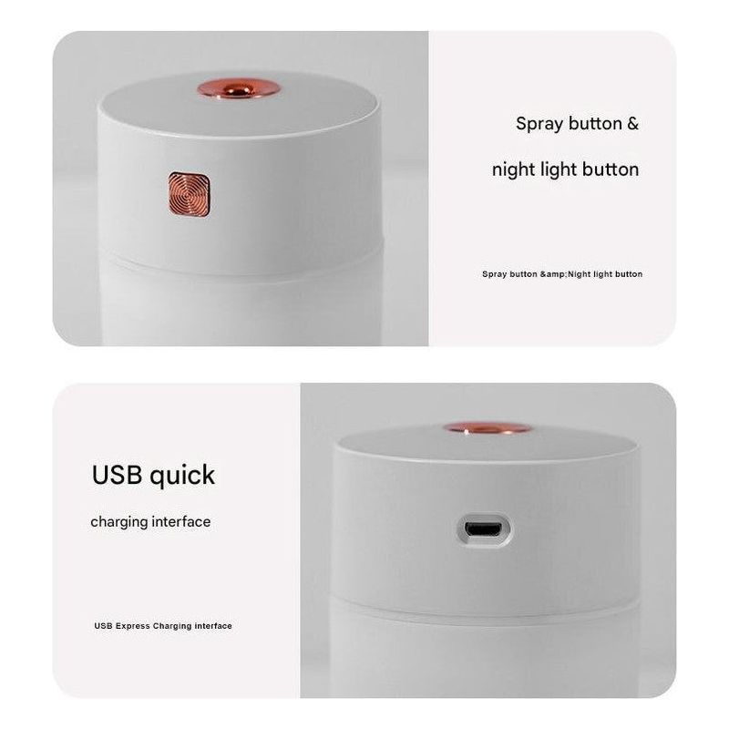 • 300ml Water Tank: Provides hours of operation without frequent refills. Easy to fill by twisting off the top lid.
