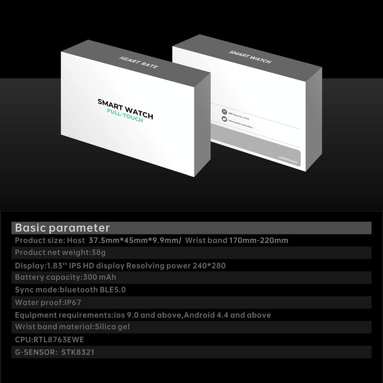• 1 x 1.83 Inch Bt5.2 Smart Sport Watch Support Sleep / Heart Rate / Blood Oxygen / Temperature / Blood Pressure Health Monitor