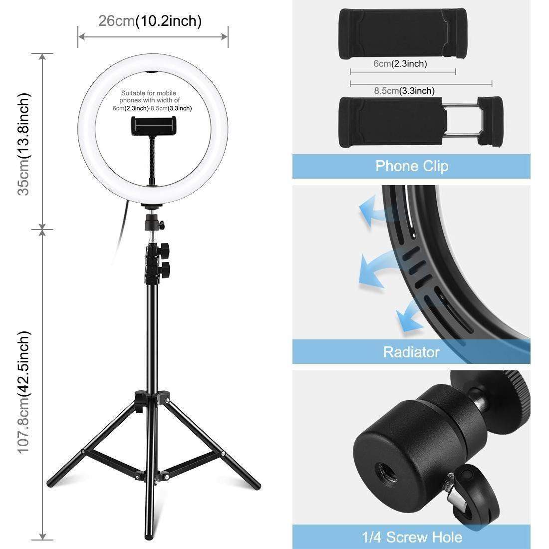 • 1 x 10.2 Inch 26Cm Led Ring Light 1.1M Tripod Mount Vlogging Video Light Live Broadcast Kits