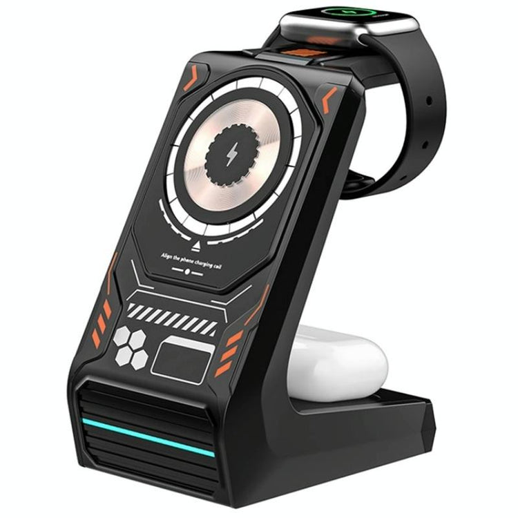 3 In 1 Wireless Charger For Mobile Phone And Earphones - Orange