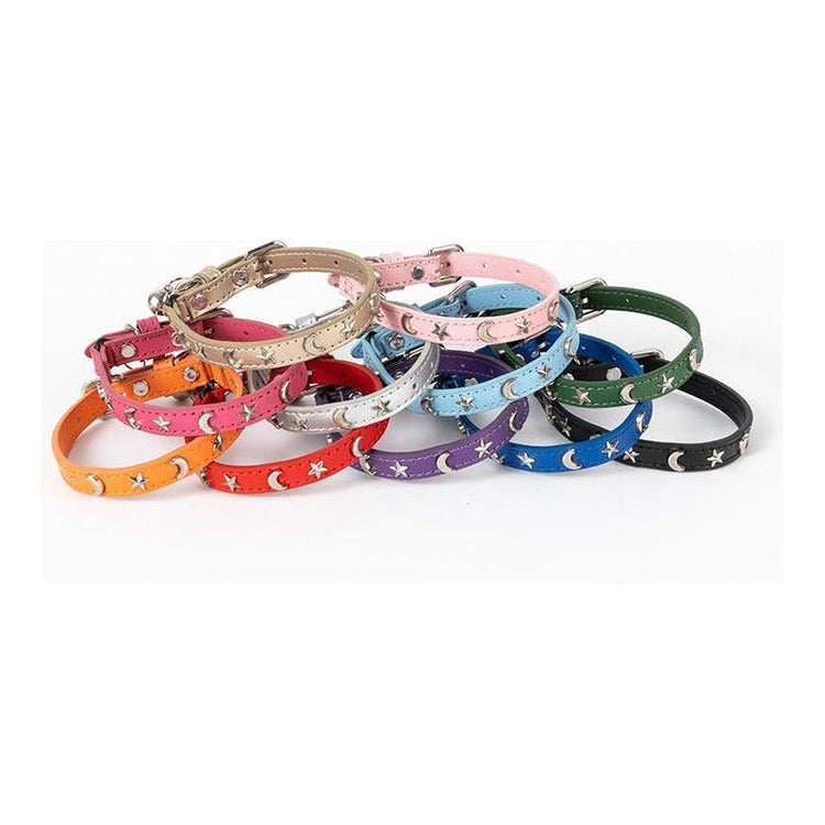 Stylish PU Leather Pet Collar - Anti-Loss, Puppy Bell, Star & Moon Design