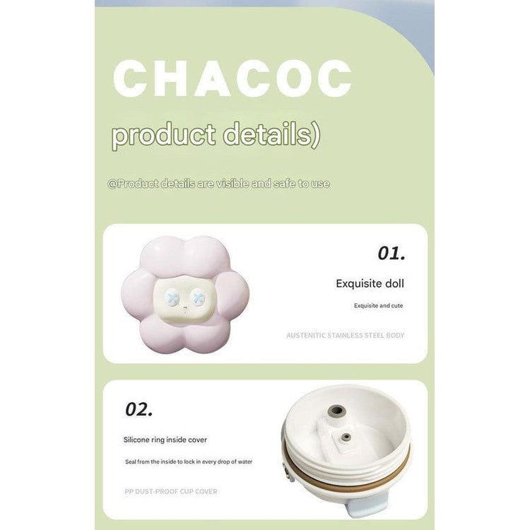 304 Stainless Steel Insulated Tumbler - Large Capacity with Handle and Cute Cloud Accessory