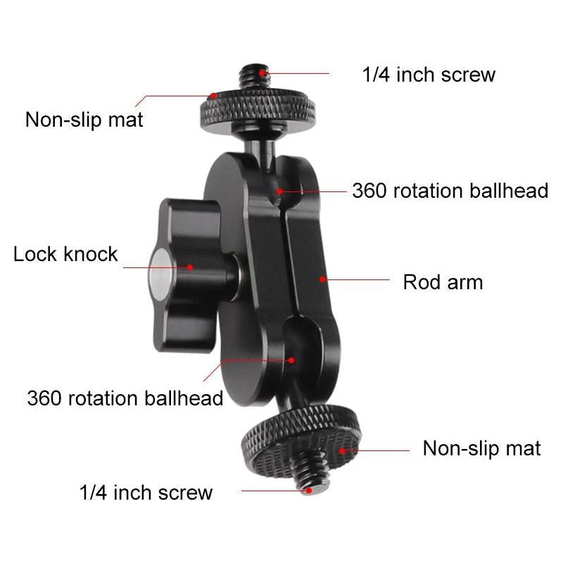 • 1 x 360 Pivot Magic Arm Mount 1/4 Inch Ball Head Bracket Black
