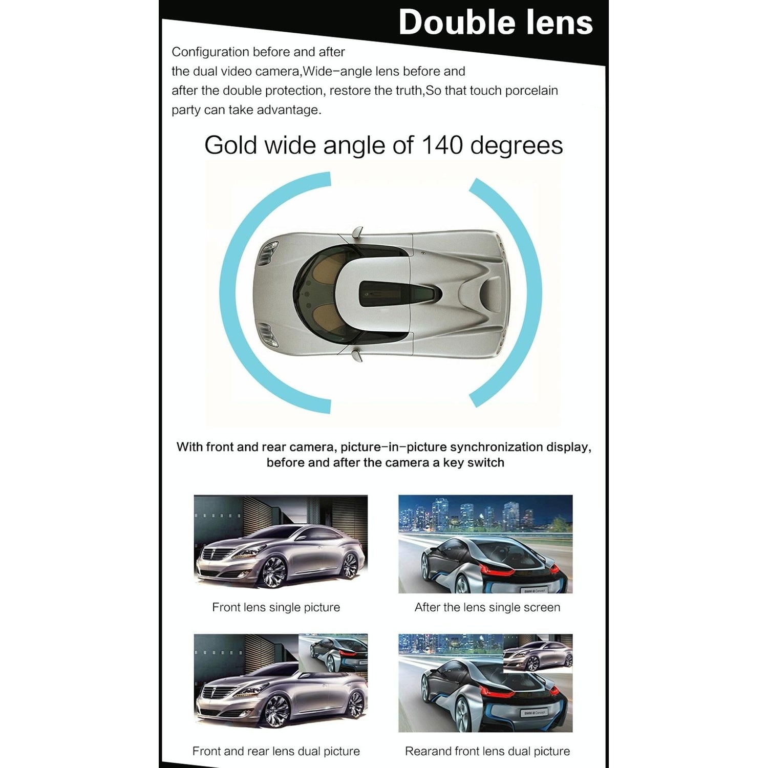 • Dual cameras with a 140 degree wide angle lens