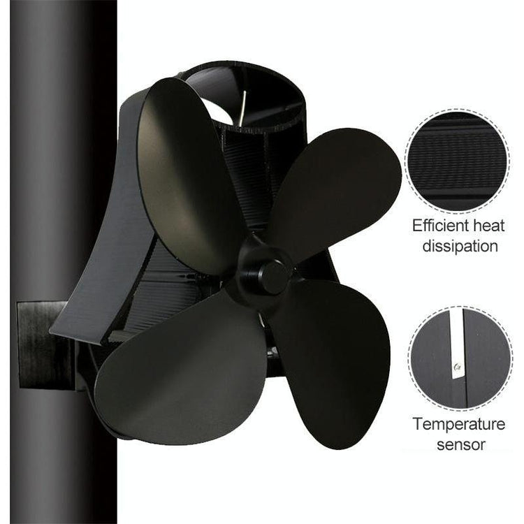 4-Blade Heat Powered Fireplace Stove Fan - Aluminum