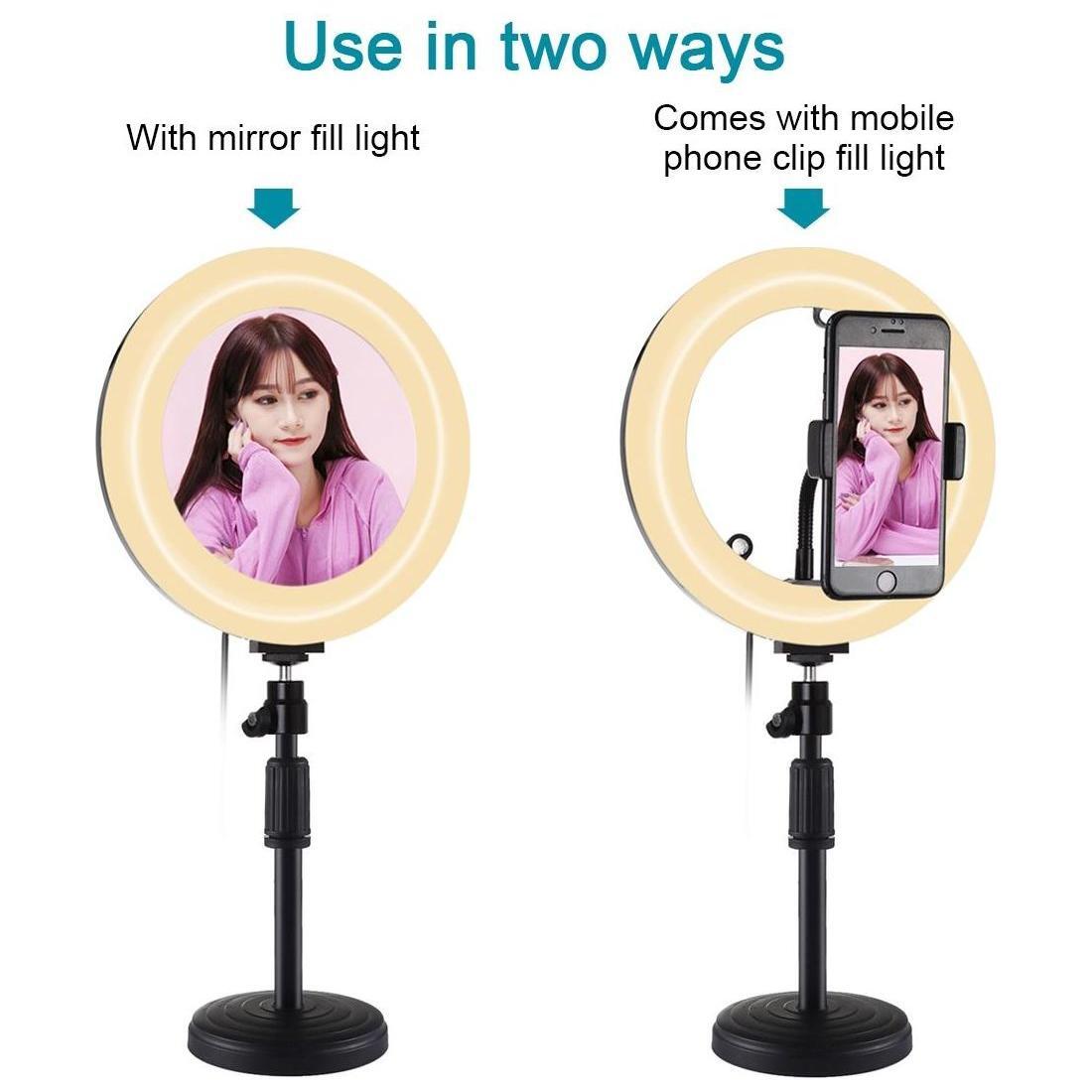7.9 Dual-Colour Led Ring Light With Desktop Mount And Phone Clamp