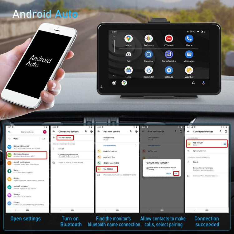 • Wireless carplay and android auto support for easy connection and use of navigation and music functions