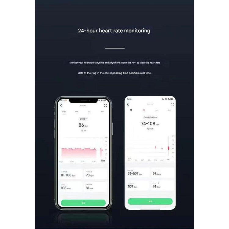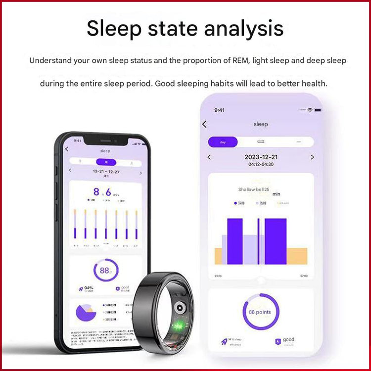 Monitor your well-being effortlessly with our innovative Smart Health Ring. This lightweight (4.7g) and ultra-thin (2.4mm) ring offers a comfortable, almost imperceptible wearing experience while packing advanced health tracking technology. Track key metrics 24/7, including heart rate, blood oxygen (SpO2), estimated blood pressure trends, sleep patterns (REM, light, deep sleep), and activity levels across various sports modes. Stay informed about your health status through detailed analysis available in the companion smartphone app. The ring features convenient magnetic fast charging and a long-lasting 17mAh polymer lithium battery, with real-time power levels viewable in the app. Crafted for a sleek look and comfortable fit, it's the discreet way to stay connected to your health data.
