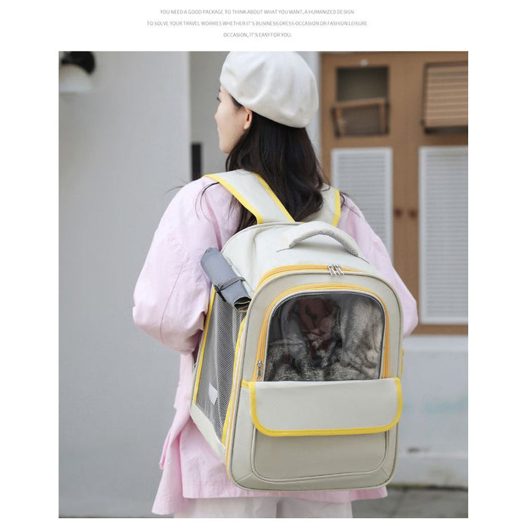 Beige And Pink Spacious Pet Carrier Backpack with Clear Window - Comfortable Travel Bag for Cats & Small Dogs