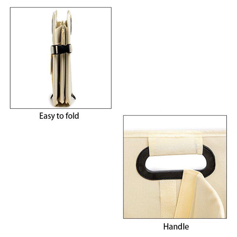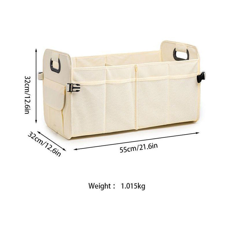 Beige Foldable Car Storage Organizer Basket - 55x32x32cm with Handles, Easy to Fold