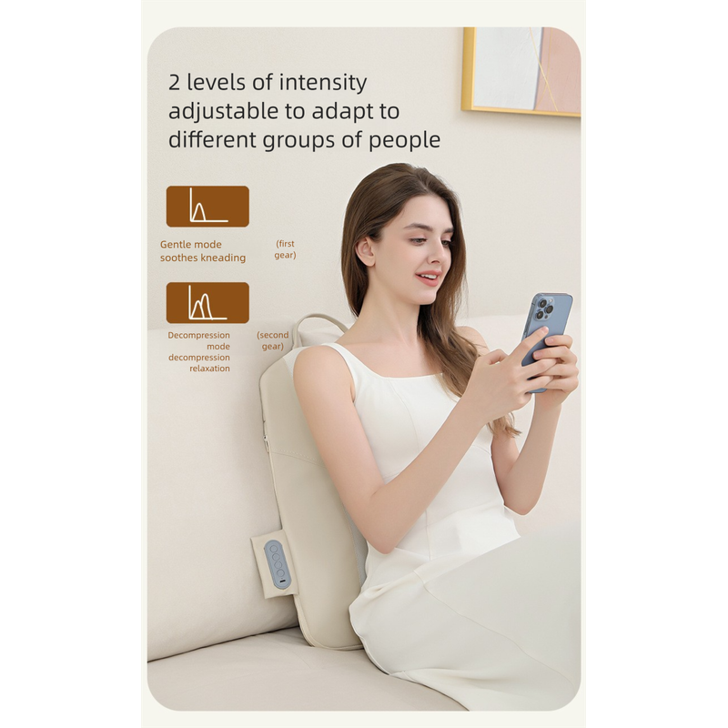 • Customizable Massage Experience: Choose from three massage modes (Full Back, Upper Back, Lower Back/Waist). Select fixed-point massage for specific areas or let the nodes travel. Adjust between two intensity levels to suit your preference.