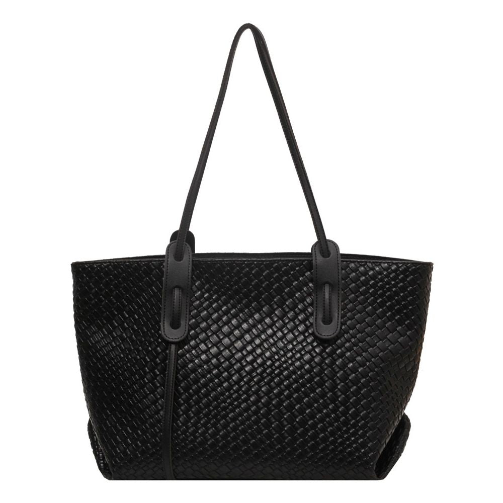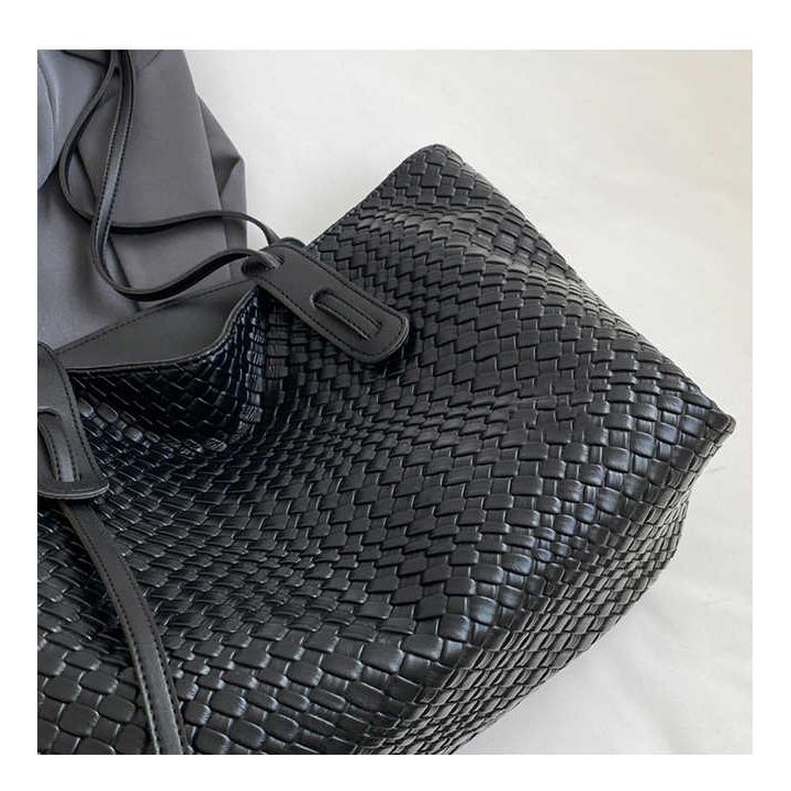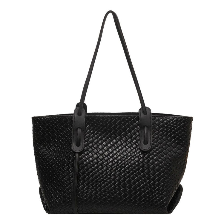 Black Chic Woven PU Leather Tote Bag - Large Capacity Casual Shoulder & Handbag for Women