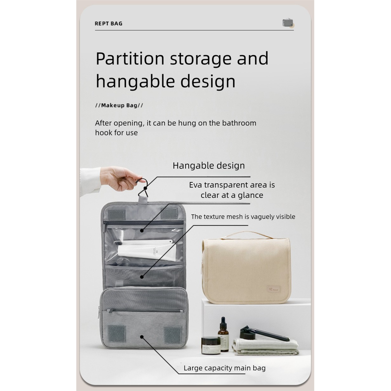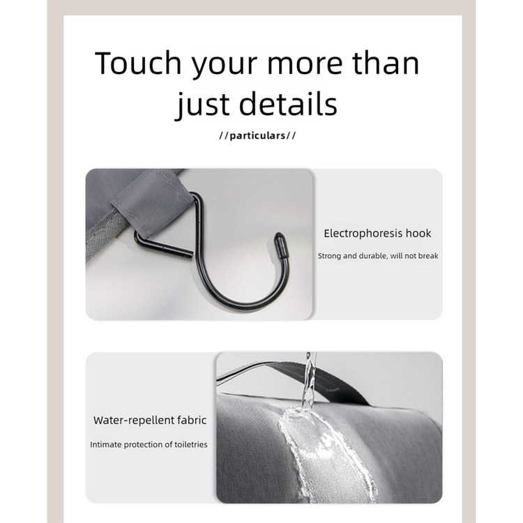 • Smart Hanging Design: Features a sturdy built-in hook, allowing you to conveniently hang the bag in bathrooms, on towel racks, or door knobs, saving valuable counter space and keeping your items within easy reach.