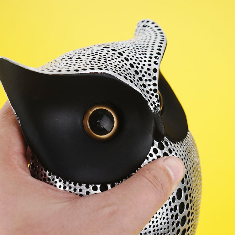 Add a touch of modern elegance to your home with this Resin Owl Figurines. Crafted from high-quality resin, these owl sculptures feature a unique perforated design with intricate dot patterns, giving them a contemporary yet whimsical look.This figurines are perfect for enhancing your living room, TV stand, entryway, or desktop. Each owl measures 11.5 cm in length, 7 cm in width, and 14.5 cm in height, making them a versatile addition to any space.