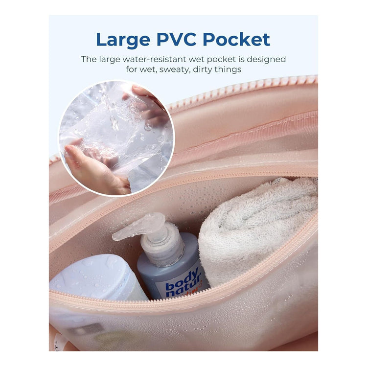 - Dry & Wet Separation Pocket: Includes a dedicated waterproof-lined compartment, perfect for storing wet swimsuits, sweaty gym clothes, toiletries, or damp towels separately from dry items.