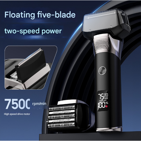 Experience a close and comfortable shave with this Reciprocating 5-Blade Beard Trimmer, designed for full-body use with a waterproof build. Ideal for daily grooming, this electric razor ensures a smooth shave while adapting to the contours of your face and body.