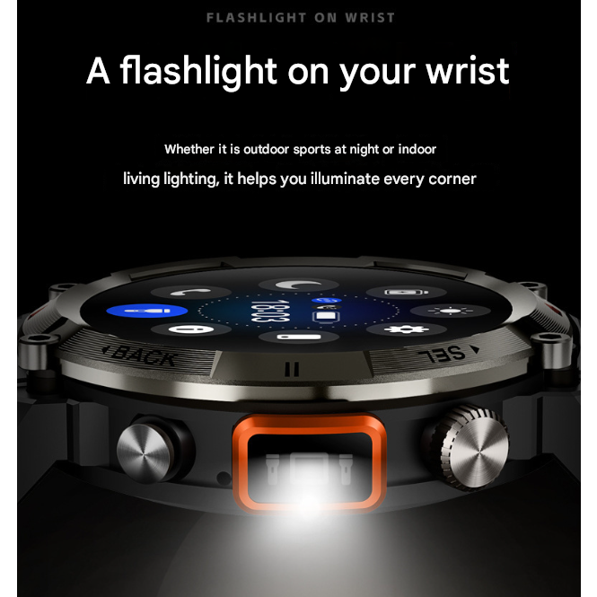 Outdoor Smartwatch with 1.45-Inch HD Round Screen and Flashlight