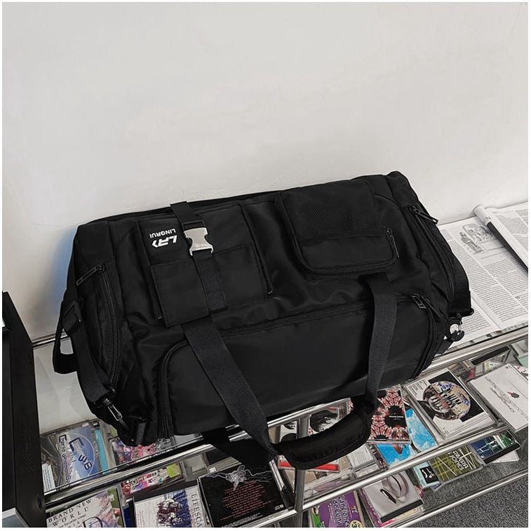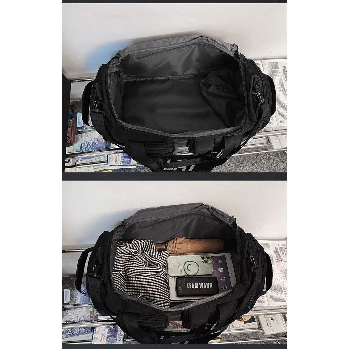 Elevate your travel experience with this Travel Duffel Bag, designed for both men and women with a sleek dark aesthetic and practical utility. Perfect for business trips, gym sessions, or weekend getaways, this bag features multiple pockets, including a wet/dry separation compartment to keep your belongings organized and protected. The durable fabric and sturdy buckles ensure long-lasting use.