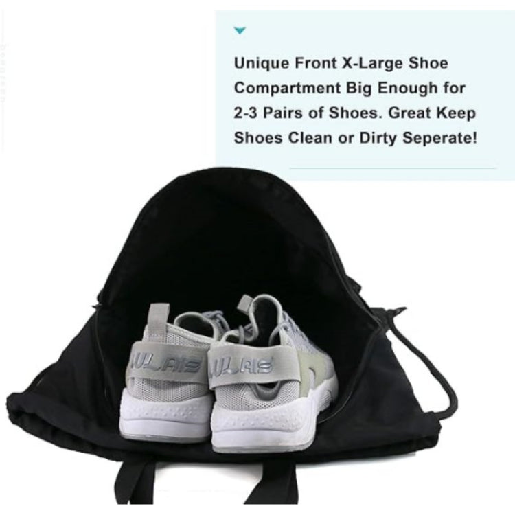 - Spacious Main Compartment: Easily holds gym clothes, shoes, towels, and other larger items, secured with a classic drawstring closure.