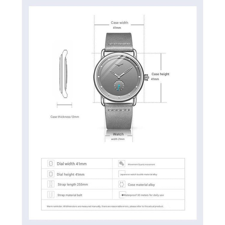 • Comfortable Leather Strap: Equipped with a soft, flexible leather strap designed for comfortable all-day wear, secured with a durable alloy pin buckle.