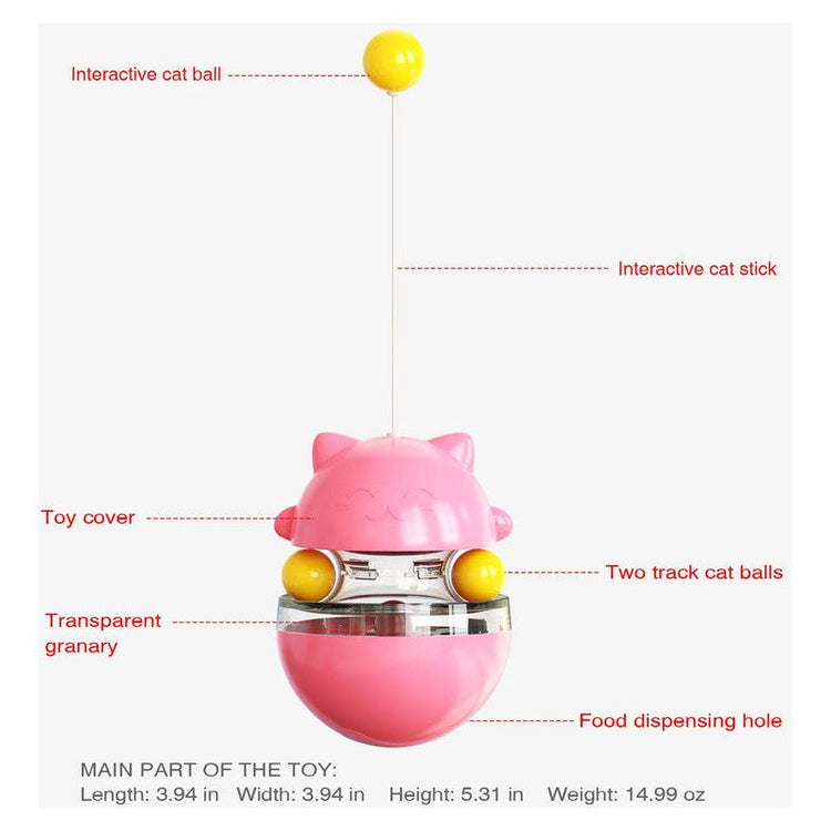 Cat Teaser Tumbler Toy - Interactive Treat Dispenser Ball with Wand