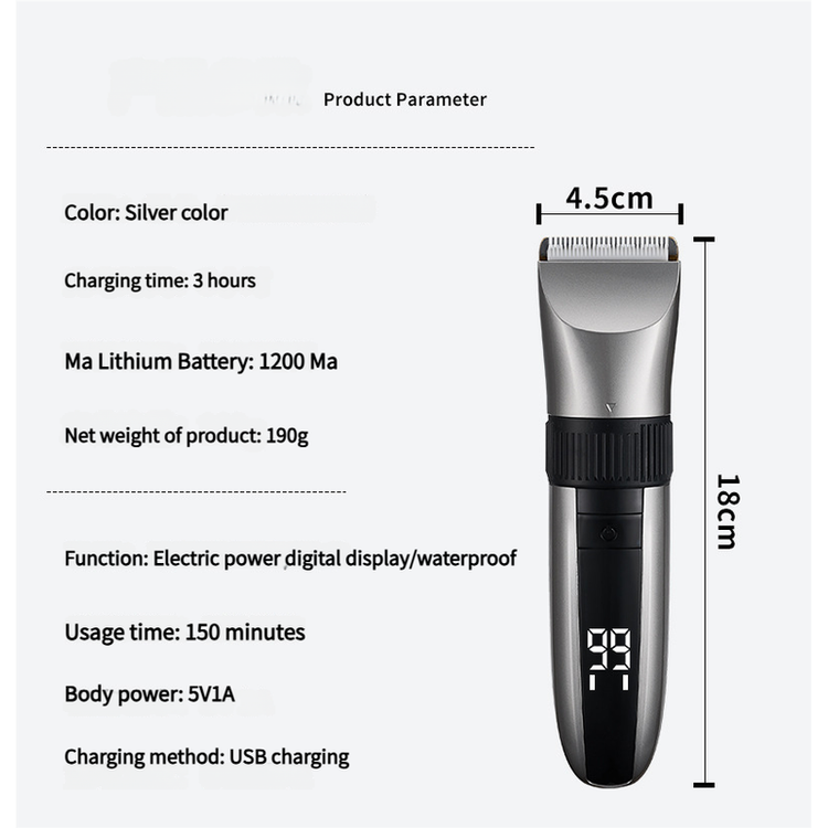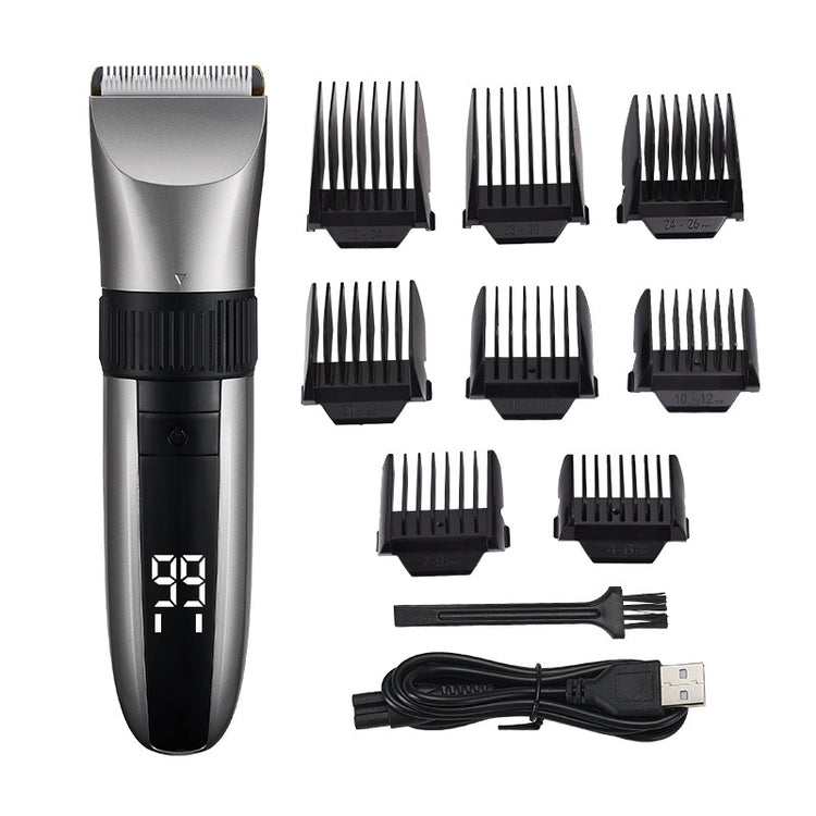 Cordless Electric Hair Clipper with LED Display - 8 Blue Adjustable Lengths