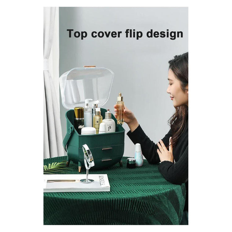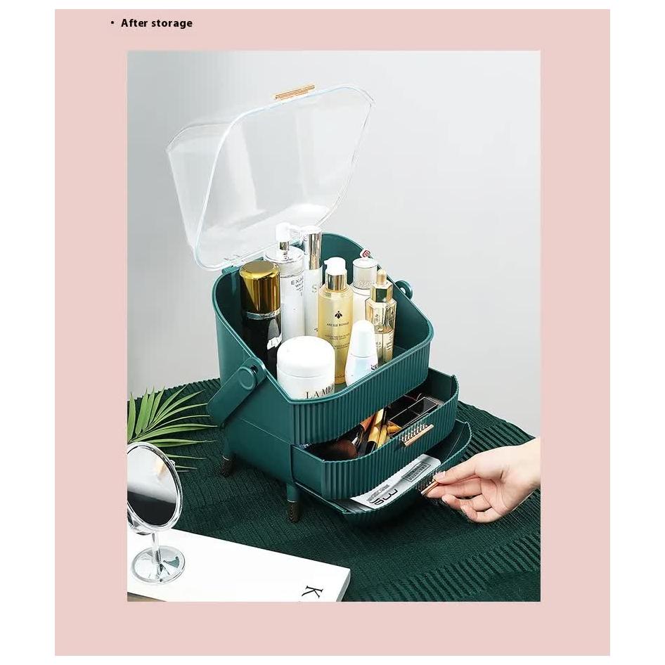 Dark Green Multifunctional Makeup Organizer with Large Capacity and Transparent Design(Makeup is a prop for shooting and is not included)