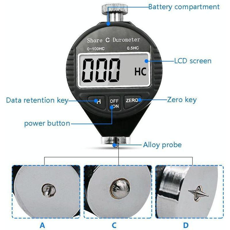 • 1 x Electronic Digital Display Hard Meter Plastic Rubber Silicone Tire Hardness Meter