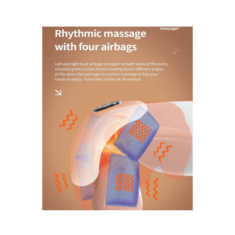 - Triple Heating Hot Compress: Immerse yourself in the warmth of our knee massager, featuring three levels of heating hot compression. This therapeutic heat penetrates deep promoting a sense of calm. Whether it's your knees or elbows, find relief wherever you need it most.