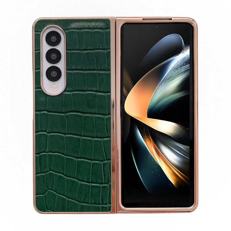 For Samsung Galaxy Z Fold4 5G Crocodile Leather Phone Case - Electroplated - Dark Green