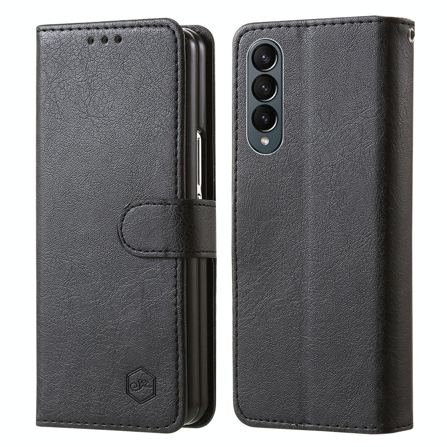 For Samsung Galaxy Z Fold4 5G Leather Texture Phone Case - Pu Tpu - Black