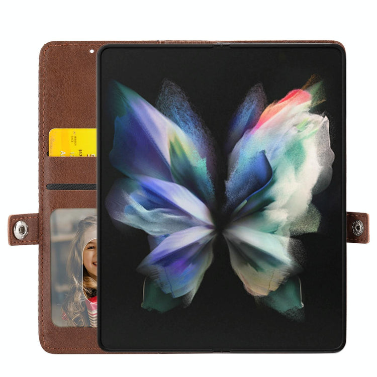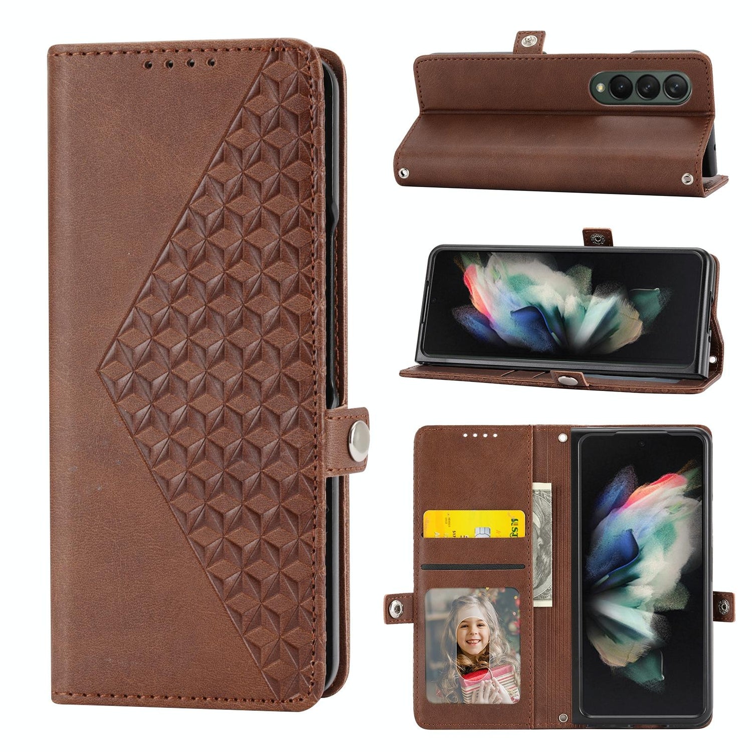 • 1 x For Samsung Galaxy Z Fold4 5G Textured Leather Phone Case - Cubic Grid Design