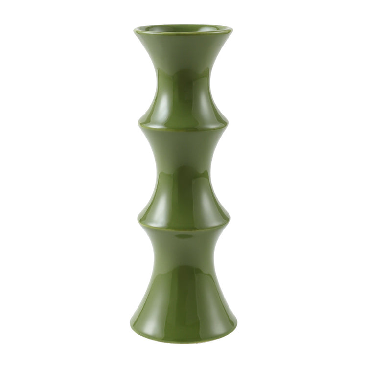 Glossy GreenCeramic Vase - Unique Bamboo-Look Design (25.5x9x7cm)